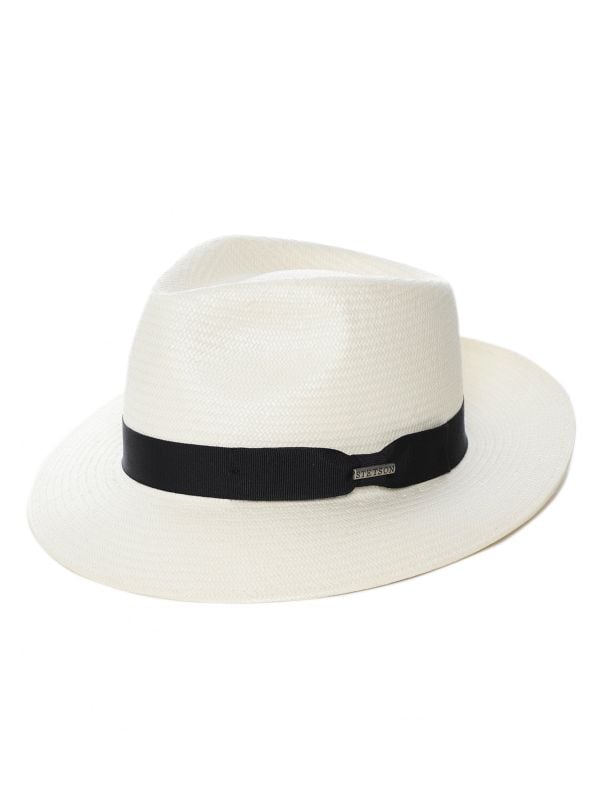 The Stetson Toyo Traveller hat is the perfect option for your warm weather vacation. Expertly crafted from a woven Toyo straw, the hat offers a smooth touch and a super lightweight handle. Featuring a pinch front crown, interior herringbone sweatband and a traditional grosgrain hat band in contrast black, whilst the Stetson hat is complete with a metal brand badge for an authentic finishing touch.