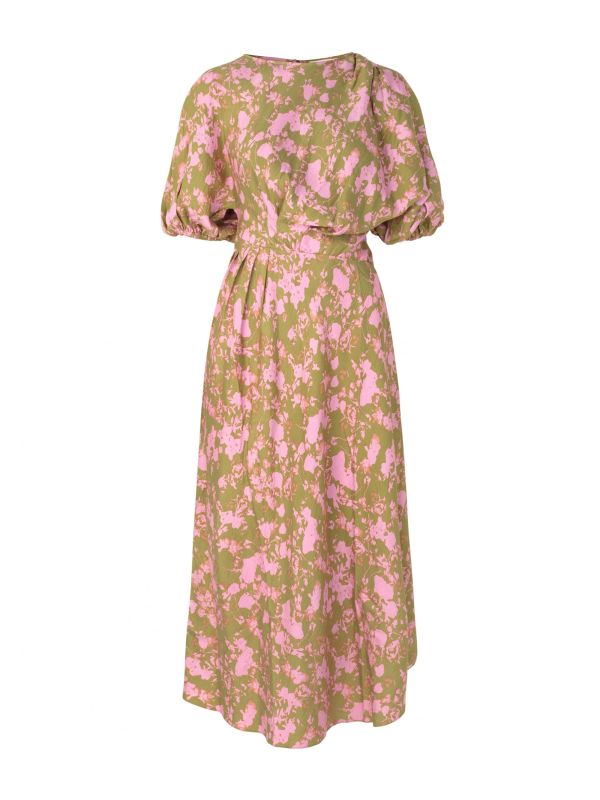 The Stine Goya Aubrie dress is featured in a collection that celebrates contemporary dance. Beautifully crafted, the midi dress has a flattering slim waist. Boasting short voluminous sleeves and detailed pleating at the waist, the Stine Goya dress is complete with a flower foliage print all over. Complement yours with heeled boots.