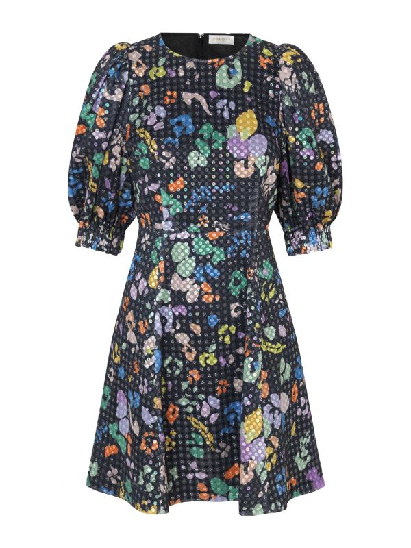 The Stine Goya Celina dress is the perfect party dress for SS22. Beautifully crafted from luxurious fabrics, the dress has been cut to a super flattering and feminine mini length and a slim fit. With puffed 3/4 sleeves, the dress is complete with a leopard print and sequin design all over. Style yours with simple heels or your favourite boots.