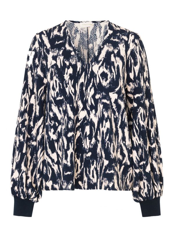 The Stine Goya Cyrena blouse is featured in a collection that is inspired by aspects of contemporary dancing. Sustainably crafted from a recycled polyester blend, the top offers a feminine v neckline. The long loose sleeves and elasticated cuffs are complemented by an all over abstract print. Style yours with patterned pants for the ultimate statement look.