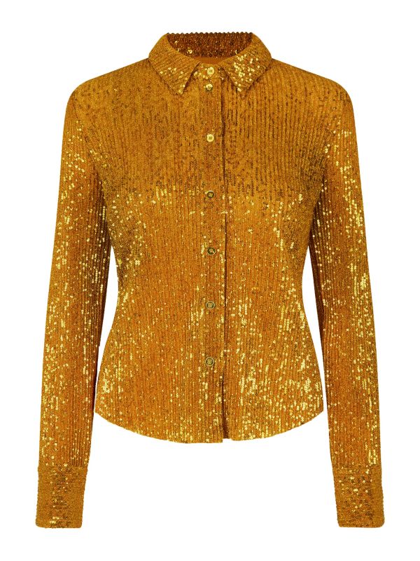 Shine bright in the Stine Goya Daya shirt. It has a classic point collar, button-up fastening, long loose sleeves with cuffs and shiny sequins all over. This shirt catches the light and makes a dazzling outfit for a special evening out.