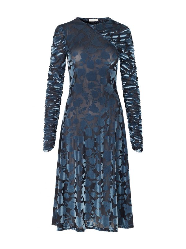 Add a unique finish to your wardrobe with the Stine Goya Elie dress. Beautifully crafted from elegant velvet fabric, the dress boasts a wrap effect with an a-line silhouette. Featuring long ruched sleeves, the dress is finished with a striking semi-transparent lace detail all over. Style yours with chunky boots for a grungy chic look.