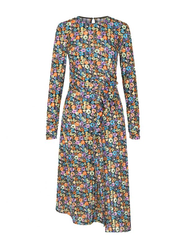 The Stine Goya Linn velvet dress is a flattering piece to add to your seasonal wardrobe. Crafted from polyester, polyamide, and elastane the dress features a floral pattern all over, a button fastening at the back, and ruched detail at the sleeve. The Stine Goya dress is finished with a unique silhouette as it offers a wrap effect and an asymmetrical hem.