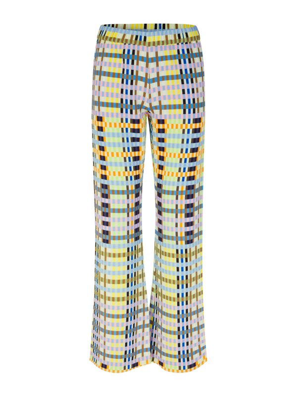 The Stine Goya Marc pants are a chic piece to style in several ways. These bold straight-leg pants feature a high elasticated waist, a slight flare and a colourful micro check pattern throughout. Wear these timeless pants with the matching Gabriel blouse and your favourite heeled sandals.