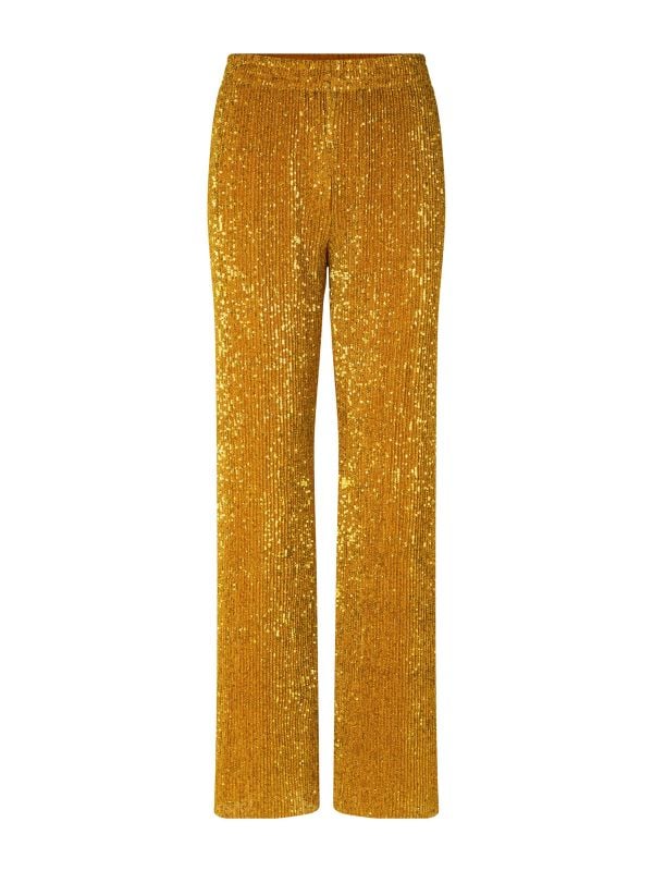 Another party piece from Stine Goya is the Markus trousers. These dazzling gold sequinned trousers have a straight-leg silhouette, adding length to the legs. They have a high waist with an elasticated waistband for easy pulling-on. Style them with the matching Daya shirt for head-to-toe glam.