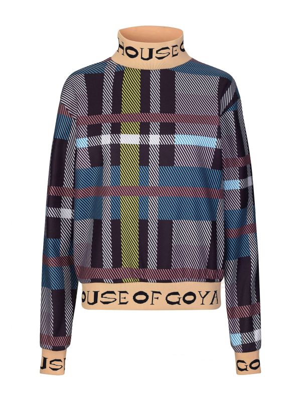 The Stine Goya Melina checked sweater is a bold and fun must-have for the colder months. Expertly crafted from 100% recycled polyester, this sweater offers maximum comfort and a super soft touch. Featuring a turtle neck, a House Of Goya branding at the cuffs and neck and a regular fit, wear your Stine Goya sweater with colourful pants to complement.
