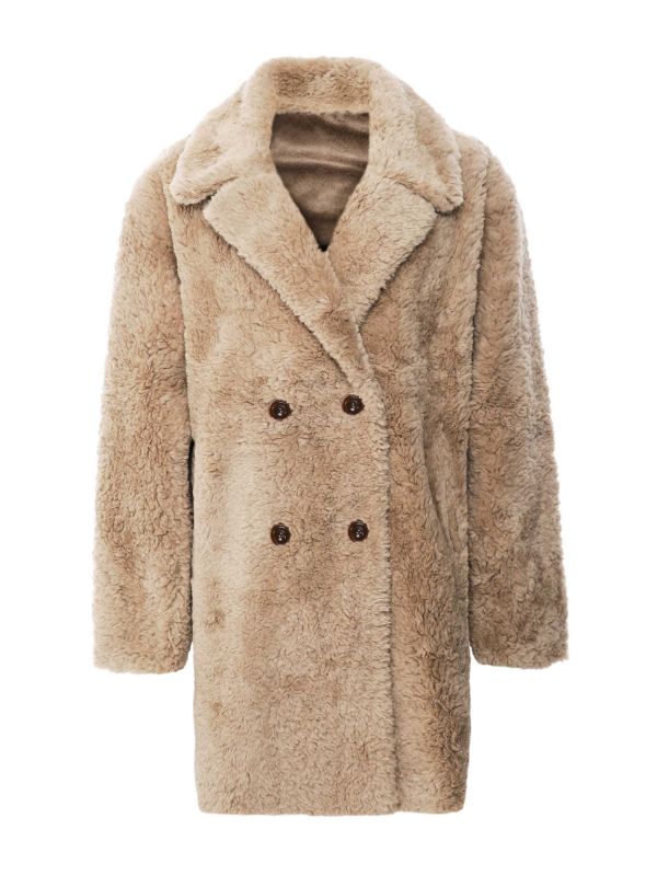 This double-breasted coat is designed with oversized notch lapels, adding a touch of drama to your outfit. It secures with chic button closures and offers practical front pockets to keep your essentials close. Whether you’re embracing its plush fur for a casual day out or turning heads with the smooth suede, this Studio Nordiic coat effortlessly elevates any wardrobe.