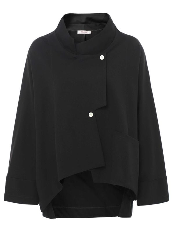 The Asymmetric Front Jacket reworks a relaxed blazer silhouette with an asymmetric front and stand collar. From Thanny, this loose-fitting jacket features a two-button offset fastening and a single patch pocket for practical wear. Cut with long, wide sleeves finished with neat cuffs, it drapes away from the body to create movement and shape. Created in Italy, it layers easily over tailored separates or casual staples for a contemporary take on tailored outerwear.