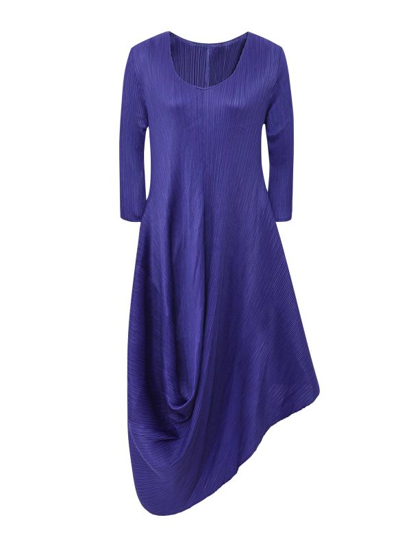 Asymmetric Plissé Midi Dress