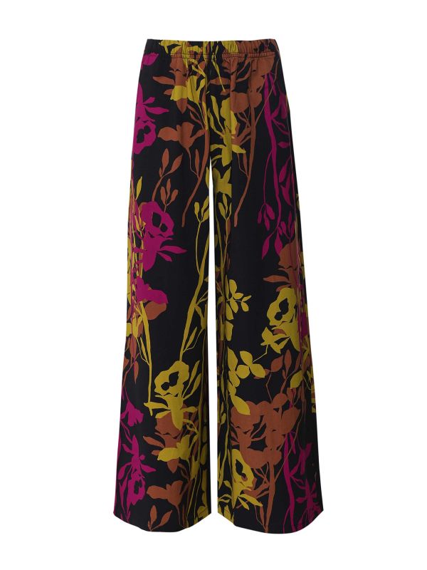 The Thanny Grinza trousers are a stylish new addition for your floaty trouser collection. Crafted from a soft viscose fabric, these trousers have a wide-leg cut offering plenty of movement as you walk. They feature a comfy elasticated waistband for slipping into with ease and are covered in a multi-coloured abstract leaf print.