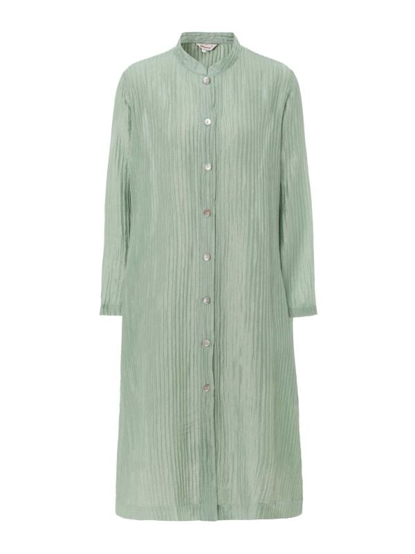 The Long Pleated Shirt by Thanny is crafted from lightweight plissé fabric, offering an easy, breezy style for the warmer weather. Designed with a longline silhouette, this Thanny shirt features a mandarin collar, long sleeves and a button-down front, finished with side pockets. Wear yours as a shirt dress with sandals or layer it over your look as a light jacket.