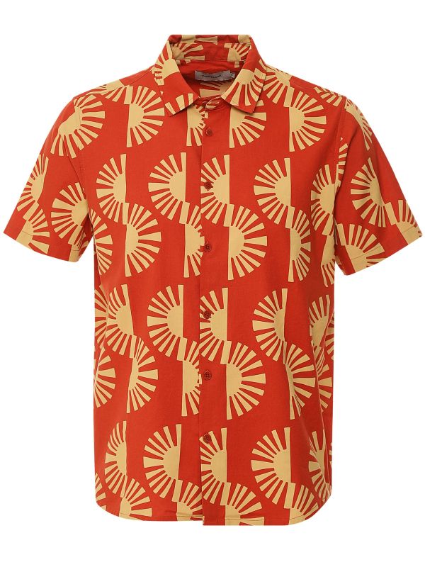 Create a style statement this summer with the Thinking MU Big Migdia Tom shirt. Responsibly crafted in GOTS certified organic cotton, the short sleeve shirt is a sustainable choice. Featuring a pointed collar with smart French placket, whilst the label's signature sun motif is depicted as a repeat pattern offering bold impact.
