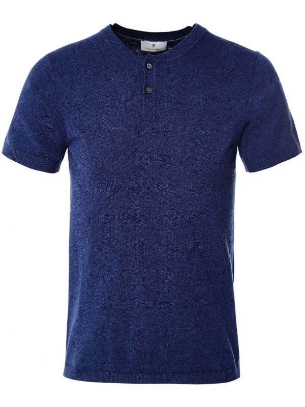 The Thomas Maine Henley t-shirt will add luxe quality to your casual basics. Lovingly crafted in a cotton and cashmere blend, the refined tee offers a sumptuously soft handle and exceptional fit. Featuring a traditional round neck with two button Henley placket and ribbed trims for a close-cut silhouette, whilst the cool blue hue makes for a versatile staple to dress with separates.