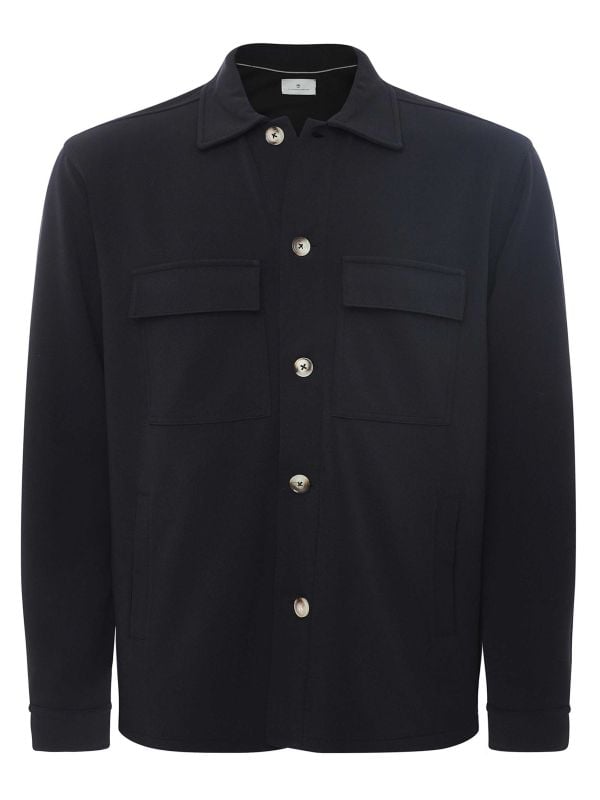 The Thomas Maine Monza overshirt is a refined layering piece that blends tailored structure with casual ease. Crafted from stretch jersey twill, it offers a soft, flexible feel while maintaining a sharp silhouette. Designed with a classic collar and button-through front, it features tortoiseshell buttons for a sophisticated touch.