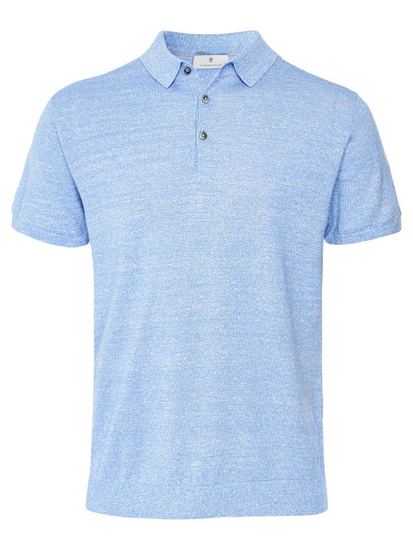 The Thomas Maine knitted polo shirt is set to add refined elegance to your casual wear. Lovingly crafted in a merino wool and linen blend, the polo offers a sumptuously soft handle whilst ensuring essential breathability. Featuring a soft pointed collar, three button placket and ribbed trims for a close fit, whilst the iridescent mother-of-pearl buttons add luxurious detail.