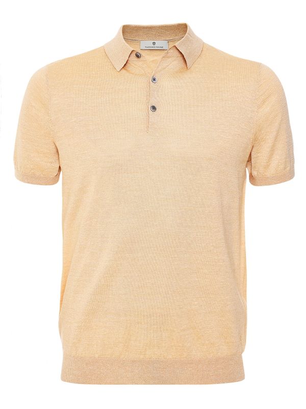 The Thomas Maine polo shirt is a superb option for refined summer style. Engineered in a merino wool and linen blend, the knitted polo offers a wonderfully soft feel alongside essential cooling qualities. Featuring a three button placket and ribbed trims for a neat silhouette, whilst the iridescent mother of pearl buttons add premium detail.