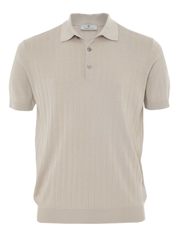 The Thomas Maine Ribbed Knitted Polo Shirt is a tailored knitted short-sleeve polo finished with a classic collar and a three-button placket. Vertical ribbing gives a clean, structured silhouette that layers under lightweight jackets or stands alone for smart-casual looks. The cut is close without feeling tight, with neat ribbed cuffs and hem and tonal four‑hole buttons. A subtle textured knit that balances comfort and precise construction for versatile seasonal styling.