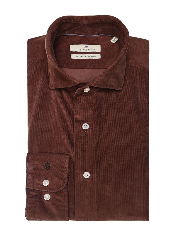 The Thomas Maine corduroy shirt is the perfect option for winter layering. Cut to a tailored fit and crafted in freshly laundered cotton baby cord with stretch, the shirt promises a streamlined silhouette and velvety soft handle. Featuring a cut away collar, adjustable cuffs and pearlescent buttons throughout, whilst the embroidered monogram to the cuff adds signature detail.
