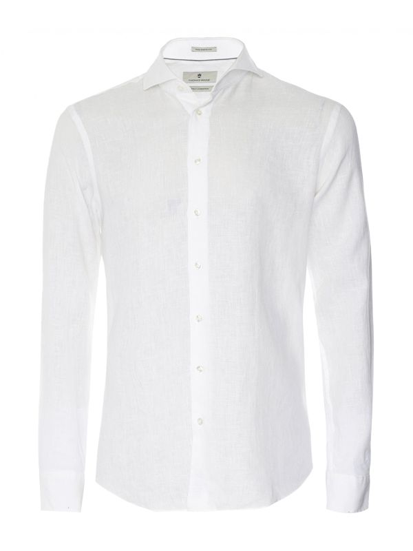 Add elegant shirting to your summer attire with the Thomas Maine Bari shirt. Cut to a tailored fit and crafted in premium linen, the shirt has been freshly laundered offering unbeatable softness and comfort. Featuring a cut away collar, French placket and adjustable buttoned cuffs, whilst the label's monogram to the cuff adds iconic status.