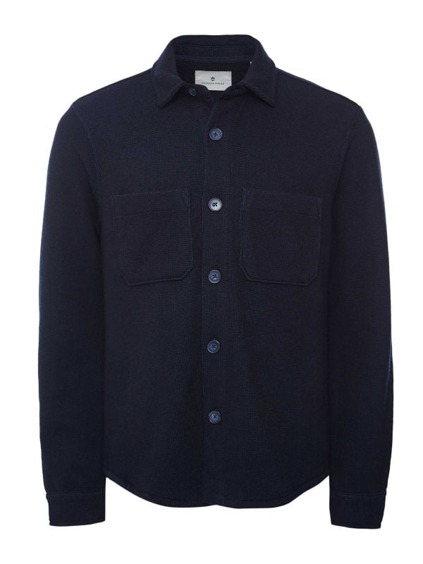 The pointed collar and clean button closure create a polished silhouette, while its patch pockets add a subtle, practical touch to its streamlined design. Long sleeves with buttoned cuffs enhance its versatility, making it easy to wear solo or layered. This Thomas Maine overshirt is an ideal blend of sophistication and casual ease, perfect for the modern wardrobe.