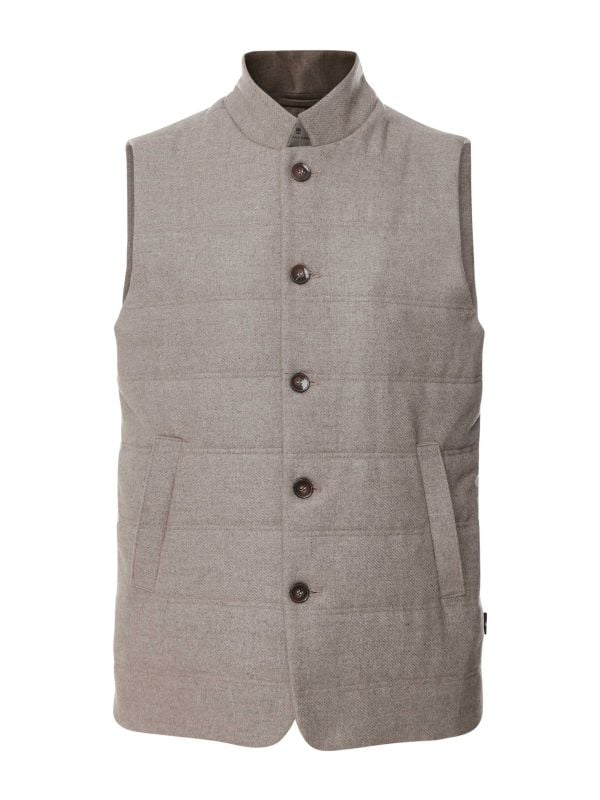 The Thomas Maine body warmer is a refined layering piece perfect for transitional weather. Crafted from a soft wool blend, it features a stylish baffle quilt design that adds both warmth and texture. The stand collar gives it a smart, structured look, while the button closure and side pockets enhance practicality and comfort. Finished in a regular fit, this Thomas Maine gilet easily pairs with shirts or knitwear for a polished yet casual everyday outfit.