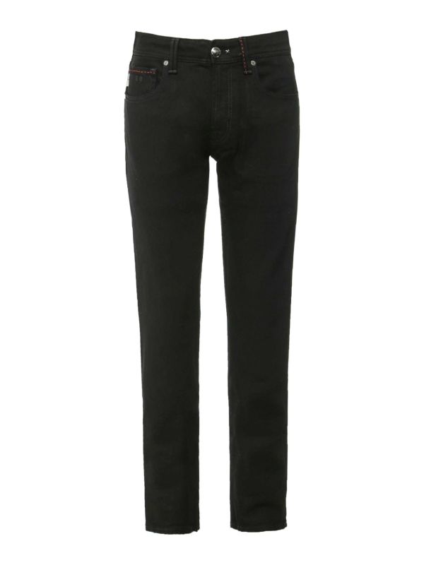 Adorned with branded metal hardware and a distinctive waistband tab, these jeans exude sophistication. Featuring belt loops for added versatility, each pair is meticulously crafted in Italy to ensure the highest quality standards. With their sleek slim fit, Tramarossa Michelangelo jeans effortlessly combine timeless elegance with contemporary flair, making them a wardrobe staple for the discerning individual.