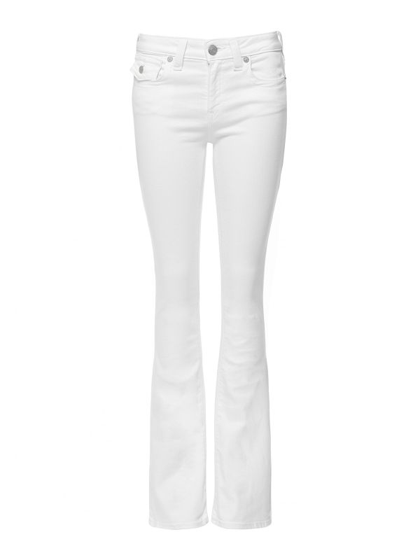 Add a classic look to your everyday denim rotation with the True Religion Becca jeans. Boasting a stylish bootcut silhouette, these white denim jeans are an effortless piece to style with everything. They feature clean hardware, tonal stitching, button flap back pockets and are complete with a subtly flared calf and hem.