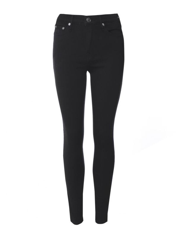 Elevate your everyday looks with the True Religion Halle skinny jeans. Crafted in timeless black denim with a super skinny leg, these flattering high rise jeans are super easy to team with all your favourite tees and knitwear. These versatile jeans have a classic five pocket design and feature gunmetal hardware, with crystal horseshoe embellishment at the back pockets for a glam finishing touch.