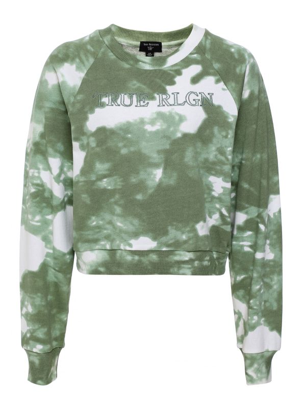 The True Religion tie dye sweatshirt is your newest must-have. Cut from a super soft and comfortable cotton blend, this women's pullover features a crew neck, raglan sleeves and all-over tie dye design. The sweatshirt is complete with a cropped hem and logo detail at the chest.