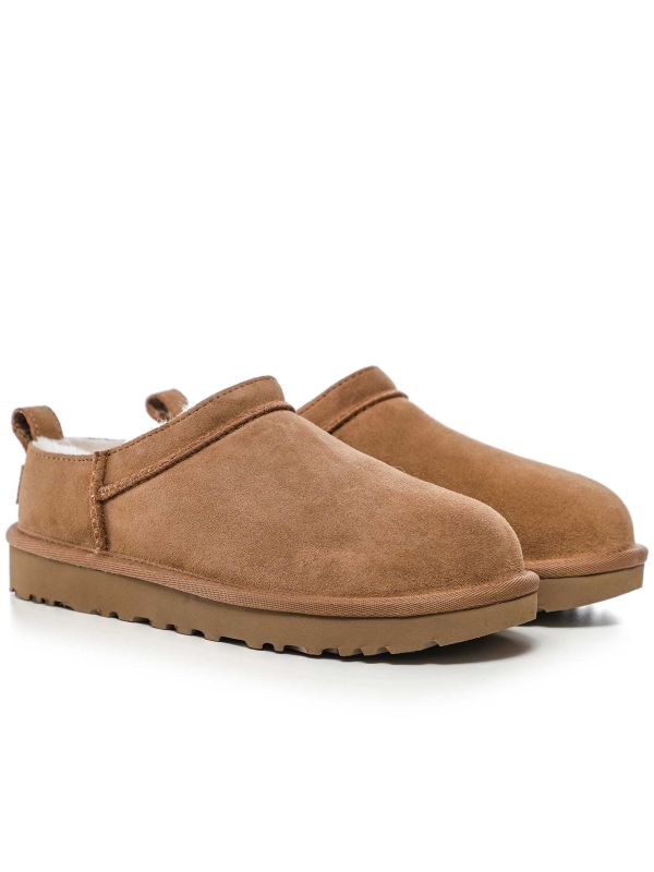 The Classic Micro Boots by UGG combine cosy comfort with easy-wear design. They have a suede upper and a plush sheepskin lining for warmth and softness. A low-profile, treaded rubber outsole provides grip for light outdoor use, while a heel pull-tab and branded patch make them simple to slip on and off. Neat topstitching and piped trim finish the silhouette. Ideal for relaxed weekends and casual outings, they balance soft interiors with durable soles for everyday comfort. Designed for easy daily wear.