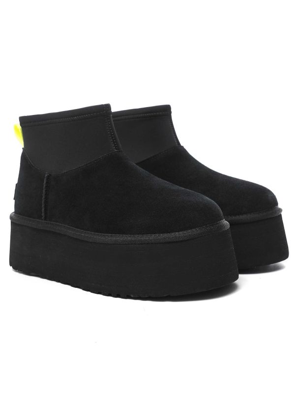 The UGG Classic Mini Dipper is a new version of the Classic Dipper Boot, created with a shorter neoprene shaft. These UGG mini boots have the iconic UGGplush™ lining, foam footbed, EVA midsole and Sugarcane EVA outsole and feature a suede heel counter, an embossed suede heel label and contrast orange rear pull tabs. Set with a 2" platform, these boots are an autumn/winter essential for your footwear collection.