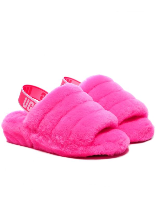 Add a quirky and playful finish to your seasonal outfit with the UGG Fluff Yeah slides. Expertly crafted from sheepskin, you will be sure to experience lasting comfort while wearing yours. Featuring an elastic strap with the UGG graphic, these sandals are super versatile and can be styled with all of your everyday looks.
