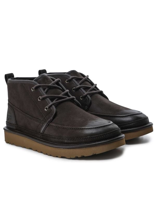 Upgrade your everyday comfort with the UGG nubuck Neumel Moc boots—a premium, wear-anywhere style built to deliver instant warmth and unstoppable ease. The buttery nubuck leather uppers and metal eyelet lace-up give you a tough-yet-refined look, while the rear pull tab makes them quick to slip on when you’re heading out the door. Inside, the plush 10mm UGGplush™ lining and insole (crafted from upcycled wool and TENCEL™) wrap your feet in next-level softness that customers rave about year after year. A cushioned foam footbed keeps every step light, and the eco-friendly sugarcane EVA outsole delivers durable grip without the weight. Finished with recycled textile binding and a clean heat-embossed logo, these UGG boots hit that perfect balance of style and sustainability. If you want a pair that works hard, feels incredible, and sells out fast for a reason, lock in your size now and experience the comfort upgrade everyone’s talking about.