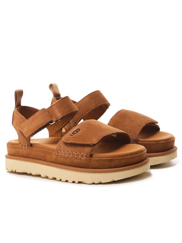 Experience the epitome of on-trend fashion and unparalleled comfort with the UGG Goldenstar sandals. Crafted with velvety suede and featuring a platform sole, these strap sandals are a must-have addition to your summer wardrobe.