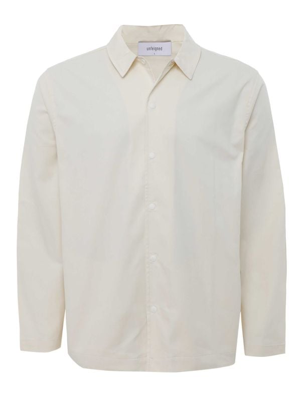 The unfeigned cotton Smart jacket is a sleek, minimalist layer crafted from soft organic cotton for a comfortable, breathable feel. It features a sharp pointed collar and a convenient snap button closure for easy styling.