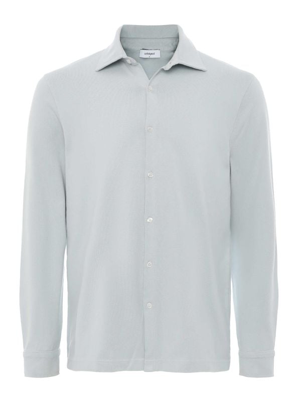 The unfeigned Ourshirt is a sleek, sustainable option for your everyday wardrobe. Made from soft organic cotton jersey, it’s breathable and comfortable, perfect for both work and casual wear. Featuring a sharp pointed collar and a button-through design with elegant mother-of-pearl buttons, this shirt brings a refined touch to your look.
