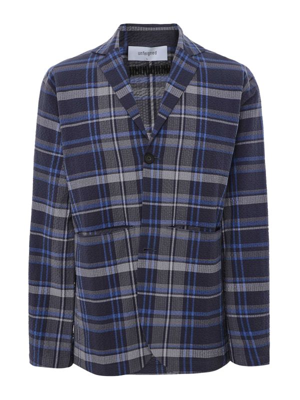 The unfeigned check blazer is a fresh take on classic tailoring, crafted from organic cotton seersucker fabric that’s lightweight and textured for all-day comfort. Featuring sharp notch lapels and a clean button closure, it delivers a polished yet relaxed look.