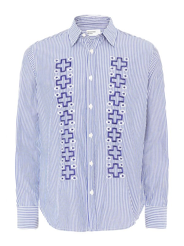 The Universal Works striped New Standard shirt fuses timeless shirting pattern with relaxed tribal-inspired detail. Crafted in premium woven cotton, the long sleeve shirt ensures a great fit and exceptional comfort. Featuring a soft pointed collar, adjustable cuffs and box pleat, whilst the embroidered patterned front adds laid-back appeal.