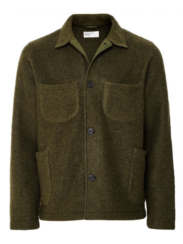 Embrace the workwear trend with the Universal Works Lumber jacket. Designed with a loose fit for a boxy silhouette, the jacket has been crafted in a lightweight wool-rich fleece that will ensure a softness and essential warmth. Featuring a pointed collar, button-through fastening and four pocket front, whilst the olive green hue makes for an ideal autumnal styling option.