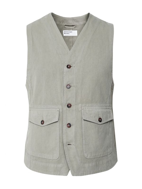 Showcase signature workwear style this summer with the Universal Works Field vest. Cut to a tailored fit and expertly crafted in a premium cotton and linen blend, the vest offers a masculine silhouette and essential breathability. Featuring a five button fastening, buttoned waist adjusters and two front buttoned pockets for functionality, whilst the garment dyed fabric offers a rich and versatile hue.