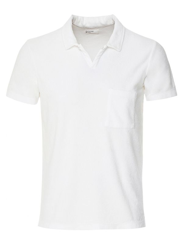 Add comforting luxury into your summer attire with the Universal Works Vacation polo shirt. Cut to a regular fit and crafted in a cotton blend, the polo has been given a terry fleece finish offering a sumptuously soft and tactile handle. Featuring a soft collar with button loop fastening, chest pocket and stepped hem, whilst the neutral colourways make for versatile styling.