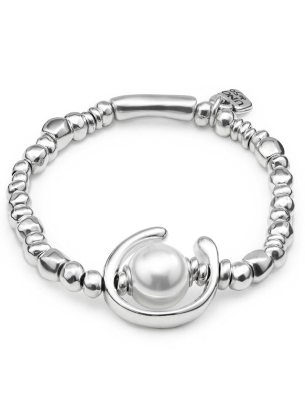 Discover the Another Round, Oh Oh Oh Bracelet by UNOde50, a unique design for your jewellery collection. 100% handmade in Spain, this UNOde50 bracelet is an elasticated beaded style featuring a silver-plated hoop surrounding a white pearl. This is the perfect piece for adding a statement accessory to your looks.