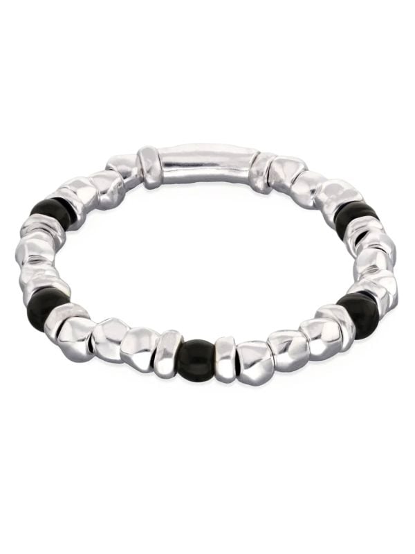 The UNOde50 beaded bracelet from the Ser Imparable collection is a versatile and contemporary accessory. Crafted with sterling silver plated beads, the black version is enhanced with Murano glass beads for extra depth and texture. Designed with an elasticated stretch fit, it’s easy to wear solo or stacked with other UNOde50 bracelets for a layered look. Handmade in Spain, this bracelet combines artisanal craftsmanship with effortless, modern style.