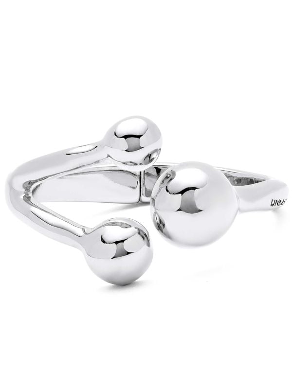The UNOde50 three bead cuff bracelet is a striking piece that brings effortless elegance to your jewellery collection. Handcrafted in Spain, this rigid cuff is cast in metal with a luxe sterling silver plating, offering a polished yet artisanal feel.