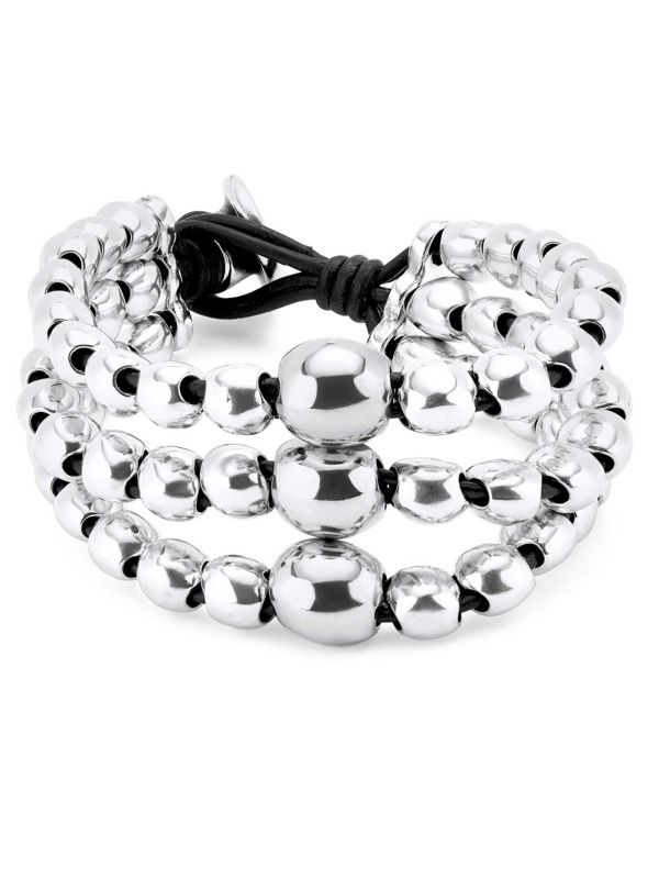 The UNOde50 Three Strand bracelet is the perfect piece for fuss-free stacking. It's handmade in Spain and features three rows of shiny silver-plated beads, each showcasing a larger central bead. This UNOde50 bracelet will uplift any look, whether worn with a t-shirt and jeans or your favourite going-out dress.