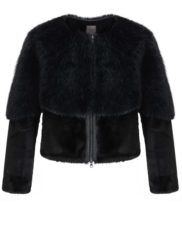 The Collarless Faux Fur Blouson Jacket from Urbancode is a plush-panel outer layer cut to a cropped, boxy silhouette. It features a round neckline, full-length sleeves and a visible front zip fastening. Panel construction contrasts a longer-pile upper with a shorter pile at the lower body and sleeves for added texture. The two-way zip gives flexible styling at the hem, making it simple to layer over knitwear or dresses. Practical yet decorative, it’s designed to be a tactile addition to winter outerwear.