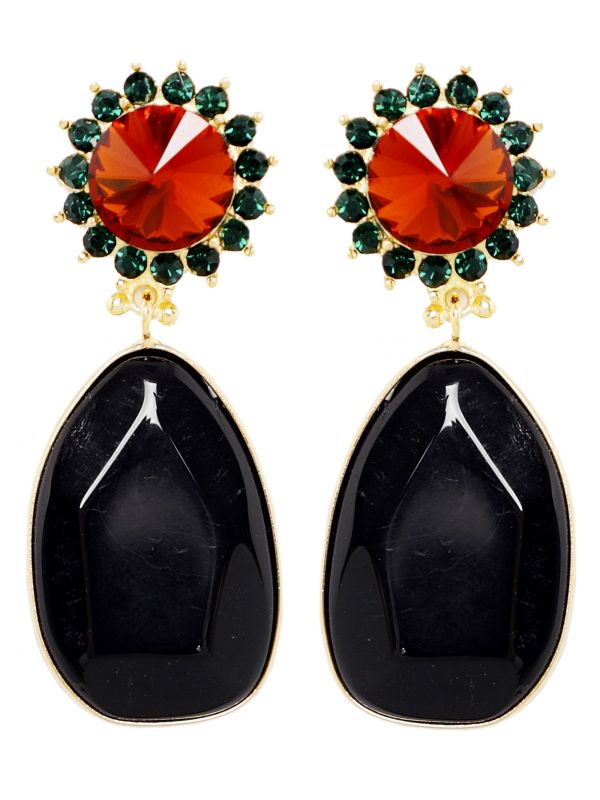 Add a sophisticated finishing touch to your ensembles with the Uzurii Monroe drop earrings. These beautiful earrings have been crafted with 18k gold plating and have an elegant drop design, with embedded crystals and a contrast stone detail. They're complete with a secure post fastening, branded pouch and gift box.