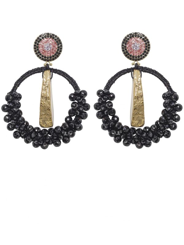 Add a distinctive finishing touch to your favourite outfits with the Uzurii Precious earrings. These gorgeous circular earrings have been crafted with 18k gold plating and have a unique design, featuring woven detailing, beading and crystal embellishment. The earrings are complete with a post fastening and branded gift box.