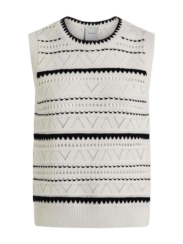 Elevate your summer knitwear collection with Varley's Athena Vest. A lightweight piece crafted from 100% cotton, this Varley vest features a pointelle knit with contrast stitching on the neckline and through the body. It's finished with a rib hemband and armholes for extra texture and makes an excellent layering piece in cooler weather.