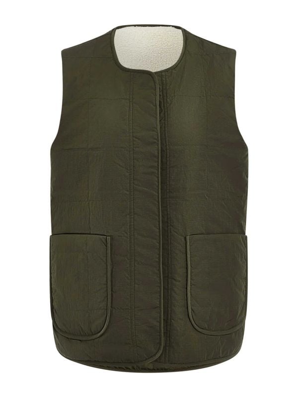 The Audrea Reversible Gilet offers two looks in one from Varley. One side features soft sherpa fleece with curved patch pockets, the reverse is quilted with piping-trimmed pockets and a clean front placket. A ribbed stand collar and a dual zip and press-stud fastening provide practical warmth and secure closure. The sleeveless cut layers easily over knitwear and shirts, while the curved hem with side vents ensures comfortable movement. Designed for versatile everyday layering.